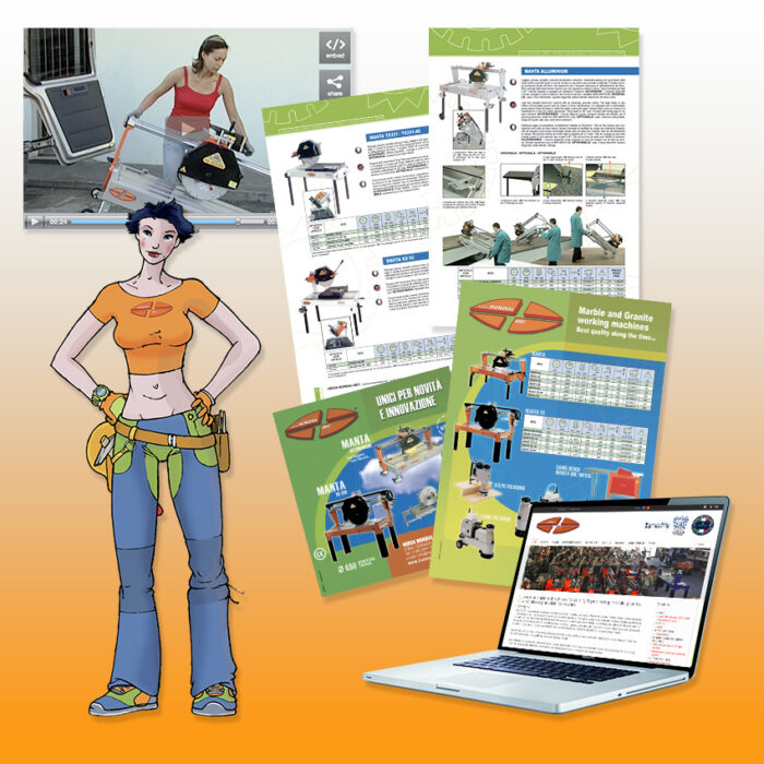 Restiling Logo, Coordinati, Brochure, Catalogo prodotti, Inserzioni pubblicitarie, Sito Internet dedicato, Listino prezzi, Testimonial, Filmati di prodotto.
